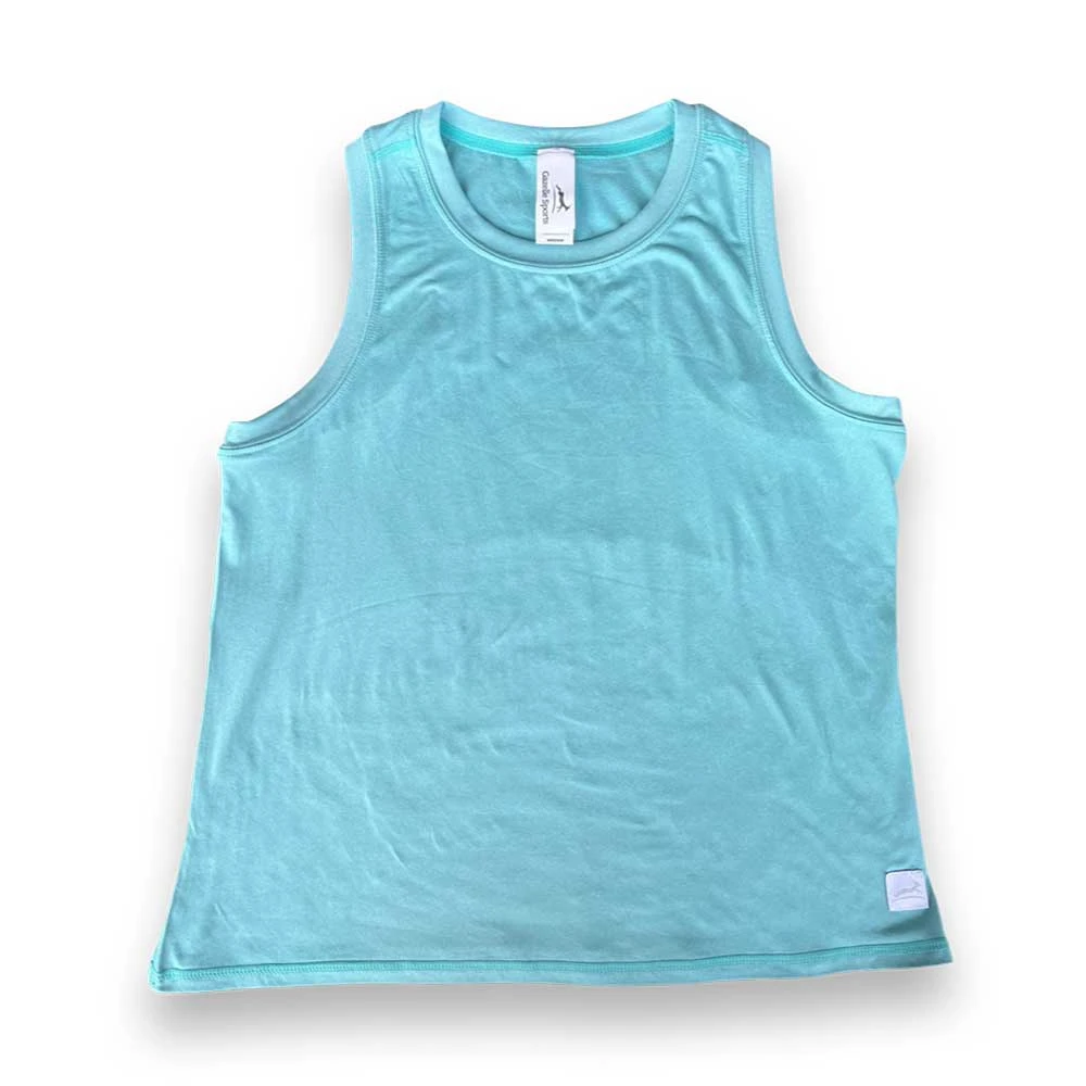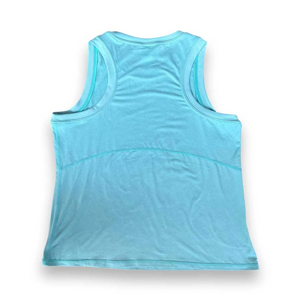 This tank keeps everyone on trend. Classic crew neck fit with an almost-cropped silhouette. Made with Performance Tech fabric and the addition of a smooth ribbing detail to finish off the neck and arm holes.